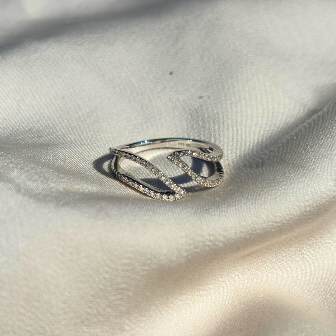 Entwined Leaf Designer Ring in 9 ct Yellow Gold, Gracefully Set with Laboratory-Crafted Diamonds