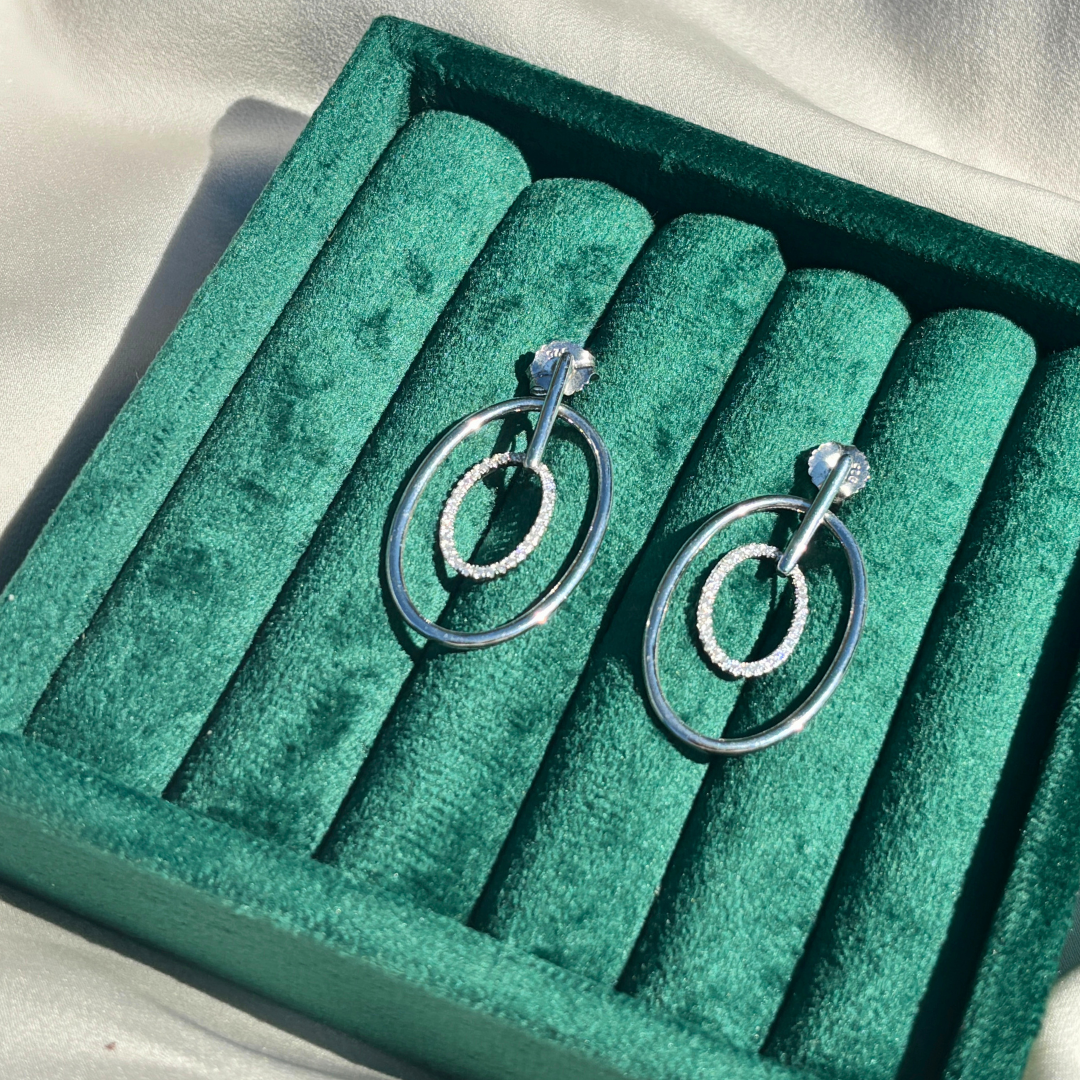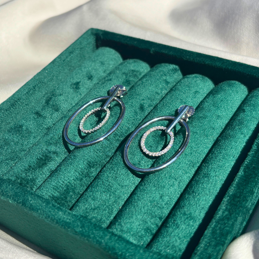 Hand-Crafted Sterling Silver Oval Hoop Earrings with a Centered Cubic Zirconia Band
