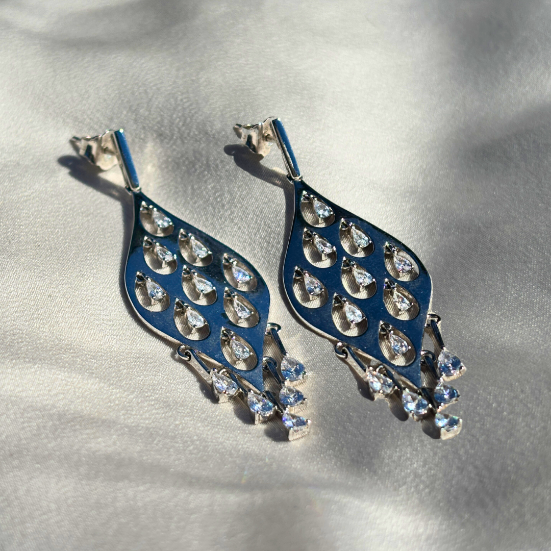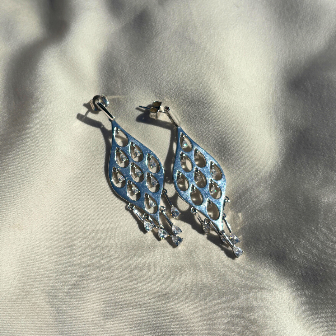 Handmade Sterling Silver Leaf-Shaped Earrings Accented with Cubic Zirconia