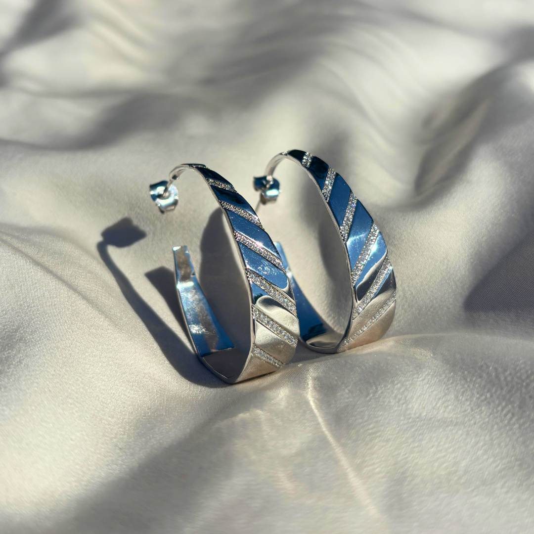 Handmade Sterling Silver Hoop Earrings with Cubic Zirconia